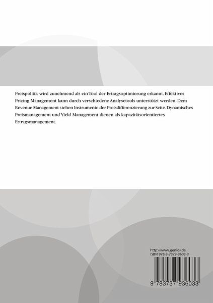 Preispolitik wird zunehmend als ein Tool der Ertragsoptimierung erkannt. Effektives Pricing Management kann durch verschiedene Analysetools unterstützt werden. Dem Revenue Management stehen Instrumente der Preisdifferenzierung zur Seite. Dynamisches Preismanagement und Yield Management dienen als kapazitätsorientiertes Ertragsmanagement.