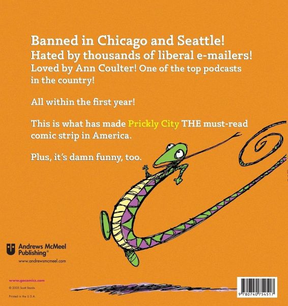 As the American mainstream tilts gradually right, Prickly City takes its place as a humorous voice for the masses. Creator Scott Stantis' first collection captures the issues and arguments of the George W. Bush political era era from the viewpoint of a little girl and a cute coyote. Never shy about commenting on sensitive and controversial political and social events, Prickly City is timely and humorous. This collection of the conservative strip draws from today's political current and gives readers plenty of reasons to laugh. Carmen, a straightforward, sensible kid, and her unlikely best friend, Winslow the innocent coyote pup, frolic and tussle in the American Southwest while discussing hot-button issues such as condoms in schools, violent video games, gay marriage, and highly contested presidential campaigns. As Carmen might say, ""We may not be correct but we will always be right."" Prickly City creator Scott Stantis has emerged as an up-and-coming conservative social and political voice.