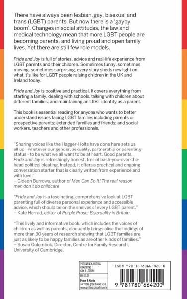 There have always been lesbian, gay, bisexual and trans (LGBT) parents. But now there is a 'gayby boom'. Changes in social attitudes, the law and medical technology mean that more LGBT people are becoming parents, and living proud and open family lives. Yet there are still few role models. Pride and Joy is full of stories, advice and real-life experience from LGBT parents and their children. Sometimes funny, sometimes moving, sometimes surprising, every story sheds new light on what it's like for LGBT people raising children in the UK and Ireland today. Pride and Joy is positive and practical. It covers everything from starting a family, dealing with schools, talking with children about different families, and maintaining an LGBT identity as a parent. This book is essential reading for anyone who wants to better understand issues facing LGBT families including parents or prospective parents; extended families and friends; and social workers, teachers and other professionals.