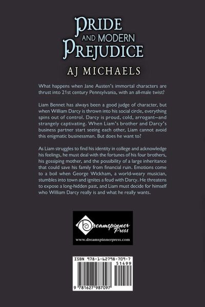 What happens when Jane Austen's immortal characters are thrust into 21st century Pennsylvania, with an all-male twist? Liam Bennet has always been a good judge of character, but when William Darcy is thrown into his social circle, everything spins out of control. Darcy is proud, cold, arrogant-and strangely captivating. When Liam's brother and Darcy's business partner start seeing each other, Liam cannot avoid this enigmatic businessman. But does he want to? As Liam struggles to find his identity in college and acknowledge his feelings, he must deal with the fortunes of his four brothers, his gossiping mother, and the possibility of a large inheritance that could save his family from financial ruin. Emotions come to a boil when George Wickham, a world-weary musician, stumbles into town and ignites a feud with Darcy. He threatens to expose a long-hidden past, and Liam must decide for himself who William Darcy really is and what he really wants.