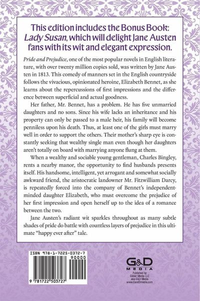 This edition includes the Bonus Book: Lady Susan, which will delight Jane Austen fans with its wit and elegant expression. Pride and Prejudice, one of the most popular novels in English literature, with over 20 million copies sold, was written by Jane Austen in 1813. This comedy of manners set in the English countryside follows the vivacious, opinionated heroine, Elizabeth Bennet, as she learns about the repercussions of first impressions and the difference between superficial and actual goodness. Her father, Mr. Bennet, has a problem. He has five unmarried daughters and no sons. Since his wife lacks an inheritance and his property can only be passed to a male heir, his family will become penniless upon his death. Thus, at least one of the girls must marry well in order to support the others. Their mother’s sharp eye is constantly seeking that wealthy single man even though her daughters aren’t totally on board with marrying anyone flung at them. When a wealthy and sociable young gentleman, Charles Bingley, rents a nearby manor, the opportunity to find husbands presents itself. His handsome, intelligent, yet arrogant and somewhat socially awkward friend, the aristocratic landowner Mr. Fitzwilliam Darcy, is repeatedly forced into the company of Bennet’s independent-minded daughter Elizabeth, who must overcome the prejudice of her first impression and open herself up to the idea of a romance between the two. Jane Austen's radiant wit sparkles throughout as many subtle shades of pride do battle with countless layers of prejudice in this ultimate "happy ever after" tale.