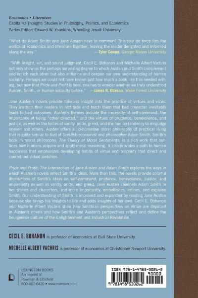 Pride and Profit explores the ways in which Jane Austen's novels interact with the ideas of economist Adam Smith. Bohanon and Vachris show how Smithian perspectives on virtue are depicted in Austen's novels and how Smith's and Austen's perspectives reflect and define the bourgeois culture of the Enlightenment and industrial revolution.
