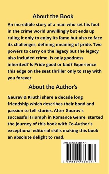 An incredible Story of a Man who set his foot in the crime world unwillingly but ends up ruling it only to enjoy its fame but also to face its challenges, defining meaning of Pride. Two powers to carry on the legacy but the legacy also included crime. Is only goodness inherited? Is Pride Good or Bad? Experience this edge on the seat thriller only to stay with you forever.