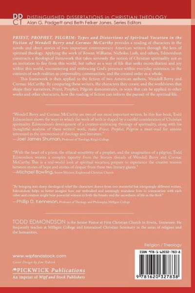 Priest, Prophet, Pilgrim: Types and Distortions of Spiritual Vocation in the Fiction of Wendell Berry and Cormac McCarthy provides a reading of characters in the novels and short stories of two important contemporary American writers through the lens of spiritual theology. Applying the work of Rowan Williams, Nicholas Lash, and others, Edmondson constructs a theological framework that takes seriously the notion of Christian spirituality not as an invitation to flee from this world, but rather as a way of life that seeks reconciliation and joy within this world, encountering and embracing God¿s presence within everyday existence, in the contexts of such realities as corporeality, communities, and the created order as a whole. This framework is then applied to the fiction of two American authors, Wendell Berry and Cormac McCarthy. By comparing these writers, the characters they create, and the worldviews that shape their narratives, Priest, Prophet, Pilgrim demonstrates, in ways that can be applied to other works and other characters, how the reading of fiction can inform the pursuit of the spiritual life.