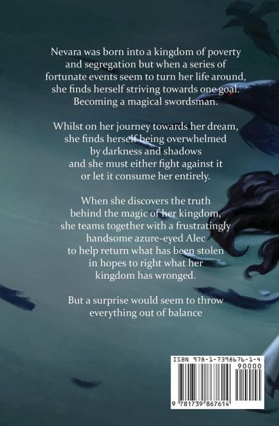 Nevara was born into a kingdom of poverty and segregation but when a series of fortunate events seem to turn her life around, she finds herself striving towards one goal. Becoming a magical swordsman. Whilst on her journey towards her dream, she finds herself being overwhelmed by darkness and shadows and she must either fight against it or let it consume her entirely. When she discovers the truth behind the magic of her kingdom, she teams together with a frustratingly handsome azure-eyed Alec to help return what has been stolen in hopes to right what her kingdom has wronged. But a surprise would seem to throw everything out of balance.