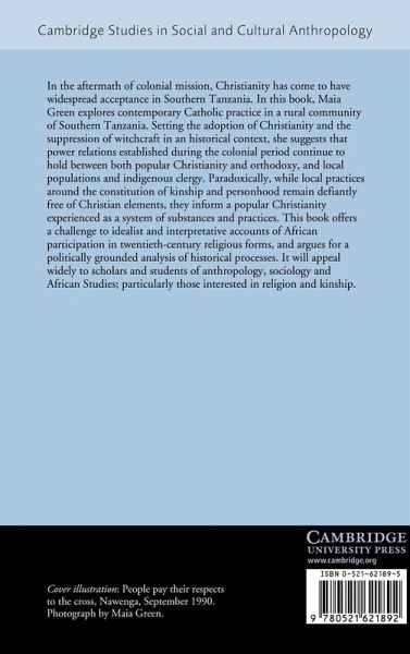 In the aftermath of colonial mission, Christianity has come to have widespread acceptance in Southern Tanzania. In this book, Maia Green explores contemporary Catholic practice in a rural community of Southern Tanzania. Setting the adoption of Christianity and the suppression of witchcraft in a historical context, she suggests that power relations established during the colonial period continue to hold between both popular Christianity and orthodoxy, and local populations and indigenous clergy. Paradoxically, while local practices around the constitution of kinship and personhood remain defiantly free of Christian elements, they inform a popular Christianity experienced as a system of substances and practices. This book offers a challenge to idealist and interpretative accounts of African participation in twentieth-century religious forms, and argues for a politically grounded analysis of historical processes. It will appeal widely to scholars and students of anthropology, sociology and African Studies; particularly those interested in religion and kinship.
