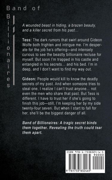 A wounded beast in hiding, a brazen beauty, and a killer secret from his past… Tess: The dark rumors that swirl around Gideon Wolfe both frighten and intrigue me. I’m desperate for the job he’s offering—and intensely curious to see the beastly billionaire recluse for myself. But soon I’m trapped in his castle and entangled in his secrets… and his bed. I’m in deep and I don’t want to find my way out. Gideon: People would kill to know the deadly secrets of my past. And when someone tries to steal one, I realize I can’t trust anyone… not even the men who share that past. But Tess is different. I have to trust her if she’s going to finish this job—still, I’m keeping her by my side twenty-four seven. But when I start to fall for her, she’ll be the biggest danger of all. Band of Billionaires: A tragic secret binds them together… Revealing the truth could tear them apart.