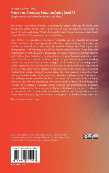 This open access edited volume is a comparative effort to discern the short-term educational impact of the covid-19 pandemic on students, teachers and systems in Brazil, Chile, Finland, Japan, Mexico, Norway, Portugal, Russia, Singapore, Spain, South Africa, the United Kingdom and the United States.