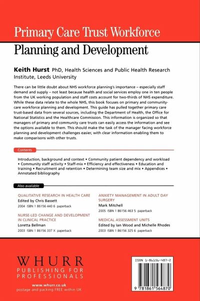 Even though primary and community care managers face the same challenges as their hospital counterparts they've never had an equivalent range of methods for evaluating workforce size and mix. So this book aims to set the record straight by explaining community demand and supply side workforce planning and development. Eight chapters set out the main variables, from dependency and workload, activity and performance, staff education, recruitment and retention, before the most recent data are synthesised into a set of software-supported algorithms that managers can easily adopt. The book and software enable readers to not only compare their organisations with those in the same socio-economic group but also against 'best-practice' staffing and performance. Both help managers determine if their stock of workers is equitable, efficient and effective. Finally, a large annotated bibliography helps users locate relevant publications, and readers should look out for workshops in 2006 designed take them through the book's methods.