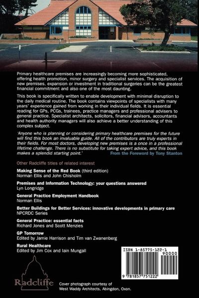 Primary healthcare premises are increasingly becoming more sophisticated offering health promotion minor surgery and specialist services. The acquisition of new premises expansion or investment in traditional surgeries can be the greatest financial commitment and also one of the most daunting. This book is specifically written to enable development with minimal disruption to the daily medical routine. The book contains viewpoints of specialists with many years' experience gained from working in their individual fields. It is essential reading for GPs trainees practice managers and professional advisers to general practice. Specialist architects solicitors financial advisors accountants and health authority managers will also achieve a better understanding of this complex subject.