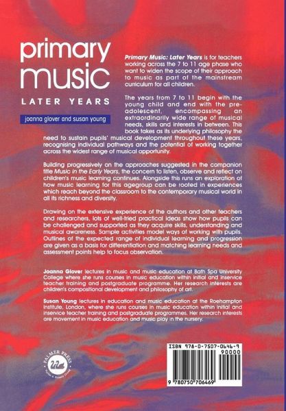 The second of two practical classroom books on the teaching of music in primary schools, Primary Music: Later Years (7-11) combines for the first time an approach based on the centrality of the class teacher's responsibility for music, and working with the demands for subject knowledge and for appropriate progression at Key Stage 1.