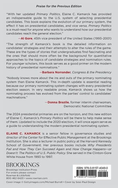 Elaine C . Kamarck is a senior fellow in Governance Studies and director of the Center for Effective Public Management at the Brookings Institution. She is also a lecturer in public policy at the Harvard Kennedy School of Government. Kamarck is an expert on American electoral politics, government innovation, and government reform in the United States and developing countries. Her previous books include Why Presidents Fail and How They Can Succeed Again and How Change Happens-or Doesn't: The Politics of U.S. Public Policy. She served in the Clinton-Gore White House from 1993 to 1997.