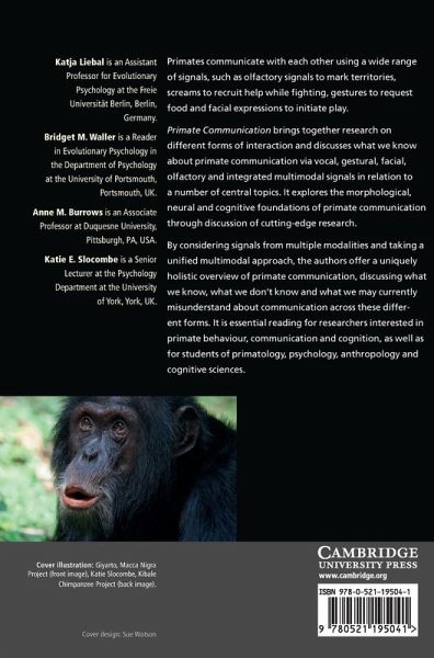 Primates communicate with each other using a wide range of signals: olfactory signals to mark territories, screams to recruit help while fighting, gestures to request food and facial expressions to initiate play. Primate Communication brings together research on all forms of interchange and discusses what we know about primate communication via vocal, gestural, facial, olfactory and integrated multimodal signals in relation to a number of central topics. It explores the morphological, neural and cognitive foundations of primate communication through discussion of cutting-edge research. By considering signals from multiple modalities and taking a unified multimodal approach, the authors offer a uniquely holistic overview of primate communication, discussing what we know, what we don't know and what we may currently misunderstand about communication across these different forms. It is essential reading for researchers interested in primate behaviour, communication and cognition, as well as students of primatology, psychology, anthropology and cognitive sciences.