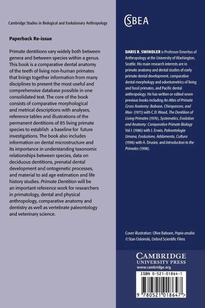 Primate Dentition is a comprehensive reference work on the teeth of extant primates that will serve as a benchmark for researchers in primatology, physical anthropology, comparative anatomy and vertebrate paleontology.