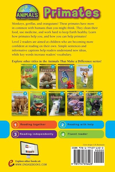 Monkeys, gorillas, and orangutans! These primates have more in common with humans than you might think. They clean their food, use medicine, and work hard to keep Earth healthy. Learn how primates help you, and how you can help primates! Level 2 readers are aimed at children who are becoming more confident at reading on their own. Simple sentences and informative captions help readers understand new ideas, while key words increase readers' vocabulary.