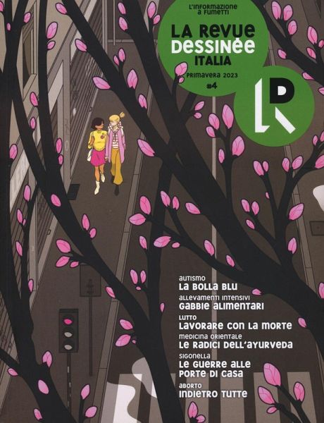 Il numero 4 de La Revue Dessinée Italia, la prima rivista di giornalismo a fumetti in Italia. Indipendente e senza pubblicità. Copertina di Bianca Bagnarelli, vincitrice come miglior copertina dell'anno al Treviso Comic Book Festival 2023. In questo numero: Allevamenti intensivi Gabbie alimentari di Francesco D'Isa & Margherita Allegri; Autismo La bolla blu di Sara Del Dot & Marta Bandirini; Lutto Lavorare con la morte di Alessia Dulbecco & Vittoria Margheri; Diritto all'aborto Indietro tutte di Audrey Lebel & Aurore Petit; Medicina orientale Le radici dell'Ayurveda di Dagmar Wujastik & Alice Milani; Sigonella La guerra alle porte di casa di Antonio Mazzeo & Lelio Bonaccorso. Das Urheberrecht an bibliographischen und produktbeschreibenden Daten und an den bereitgestellten Bildern liegt bei Informazioni Editoriali, I.E. S.r.l., oder beim Herausgeber oder demjenigen, der die Genehmigung erteilt hat. Alle Rechte vorbehalten.
