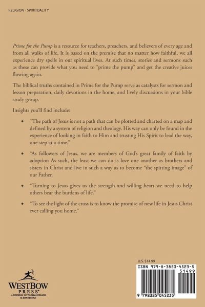 Prime for the Pump is a resource for teachers, preachers, and believers of every age and from all walks of life. It is based on the premise that no matter how faithful, we all experience dry spells in our spiritual lives. At such times, stories and sermons such as these can provide what you need to "prime the pump" and get the creative juices flowing again. The biblical truths contained in Prime for the Pump serve as catalysts for sermon and lesson preparation, daily devotions in the home, and lively discussions in your bible study group. Insights you'll find include: ¿ "The path of Jesus is not a path that can be plotted and charted on a map and defined by a system of religion and theology. His way can only be found in the experience of looking in faith to Him and trusting His Spirit to lead the way, one step at a time." ¿ "As followers of Jesus, we are members of God's great family of faith by adoption As such, the least we can do is love one another as brothers and sisters in Christ and live in such a way as to become "the spitting image" of our Father. ¿ "Turning to Jesus gives us the strength and willing heart we need to help others bear the burdens of life." ¿ "To see the light of the cross is to know the promise of new life in Jesus Christ ever calling you home."