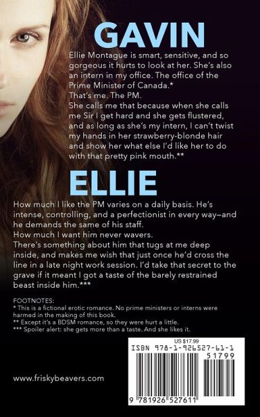 A kinky Prime Minister, a vanilla intern, and a scandal that shouldn't feel so right or cost so much. Gavin: Ellie Montague is smart, sensitive, and so gorgeous it hurts to look at her. She’s also an intern in my office. The office of the Prime Minister of Canada.* That’s me. The PM. She calls me that because when she calls me Sir, I get hard and she gets flustered, and as long as she’s my intern, I can’t twist my hands in her strawberry-blonde hair and show her what else I’d like her to do with that pretty pink mouth.** Ellie: How much I like the PM varies on a daily basis. He’s intense, controlling, and a perfectionist in every way—and he demands the same of his staff. How much I want him never wavers. There’s something about him that tugs at me deep inside, and makes me wish that just once he’d cross the line in a late night work session. I’d take that secret to the grave if it meant I got a taste of the barely restrained beast inside him.*** . . . FOOTNOTES: * This is a fictional romance. No prime ministers or interns were harmed in the making of this book. ** Except it’s a kinky romance, so they were hurt a little. *** Spoiler alert: she gets more than a taste. And she likes it.