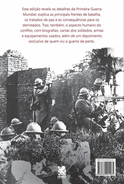 O livro revela os detalhes da Primeira Guerra Mundial, explica as principais frentes de batalha, tratados de paz e as consequências para os derrotados. Traz, também, o aspecto humano do conflito, com biografias, cartas dos soldados, armas e equipamentos usados, além de um depoimento exclusivo de quem viu a guerra de perto.