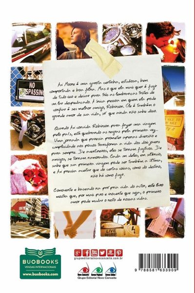 Um retrato comovente de um verdadeiro amor, que vai tocar o coração de quem tem um primeiro amor todo seu. Axi Moore é uma garota certinha, estudiosa, bem comportada e boa filha. Mas o que ela mais quer é fugir de tudo isso e deixar para trás as lembranças tristes de um lar despedaçado. A única pessoa em quem ela pode confiar é seu melhor amigo, Robinson. Ele é também o grande amor de sua vida, só que ainda não sabe disso. Quando Axi convida Robinson para fazer uma viagem pelo país, está quebrando as regras pela primeira vez. Uma jornada que parecia prometer apenas diversão e cumplicidade aos poucos transforma a vida dos dois jovens para sempre. De aventureiros, eles se tornam fugitivos. De amigos, se tornam namorados. Cada um deles, em silêncio, sabe que sua primeira viagem pode ser também a última, e Axi precisa aceitar que de certas coisas, como do destino, não há como fugir. Comovente e baseado na própria vida do autor, este livro mostra que, por mais puro e inocente que seja, o primeiro amor pode mudar o resto de nossas vidas.