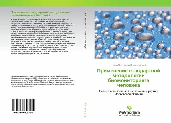 V knige izlozheny osnovnye principy ocenki vozdejstviya rtuti na organizm beremennoj zhenshhiny i ploda. Predstavleny dizajn, programma i organizaciya issledovaniya po standartnoj metodologii VOZ v Moskovskoj oblasti na baze uchrezhdenij rodovspomozheniya. Opisany metody opredeleniya soderzhaniya razlichnyh form rtuti v volosah, pupovinnoj krovi, moche i kriterii ocenki kachestva i nadezhnosti vypolneniya analiticheskih rabot; predstavleny oprosnye metody dlya analiza faktorov, vliyajushhih na jexpoziciju. Ispol'zovanie standartnoj metodologii VOZ pozvolilo sopostavit' poluchennye rezul'taty s analogichnymi pokazatelyami v drugih stranah. V dannom issledovanii ni odno znachenie biomarkerov ne prevysilo dopustimyh urovnej po kriteriyam vozdejstviya na zdorov'e po dannym VOZ, nacional'nyh agentstv SShA, Germanii. V knige takzhe privedeny referentnye znacheniya soderzhaniya rtuti v volosah, pupovinnoj krovi i moche, priveden format tipovyh zakljuchenij i profilakticheskih rekomendacij. Izdanie prednaznacheno dlya specialistov, zanimajushhihsya problemami vozdejstviya faktorov okruzhajushhej sredy na zdorov'e naseleniya, gigienistov,organizatorov zdravoohraneniya