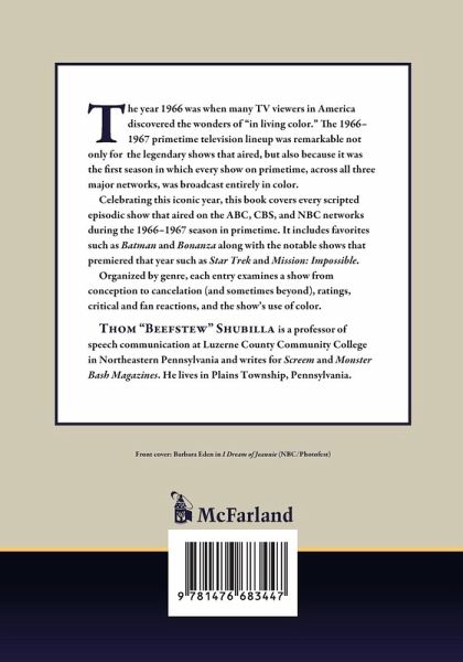 The year 1966 was when many TV viewers all over America discovered the wonders of "in living color." The 1966-1967 primetime television lineup was remarkable not only for the legendary shows that aired, but also because it was the first season in which every show on primetime, across all three major networks, was broadcast entirely in color. Celebrating this iconic year of television, this book covers every scripted episodic show that aired on the ABC, CBS, and NBC networks during the 1966-1967 season in primetime. It includes longtime favorites such as Batman, Bonanza, Voyage to the Bottom of the Sea, and The Lucy Show and the notable shows that premiered that year such as Star Trek, The Monkees, Green Hornet, Mission: Impossible, It's About Time, and the color revival of Dragnet. Organized by genre, each entry examines a show from conception to cancelation (and sometimes beyond), ratings, critical and fan reactions, and the show's use of color.