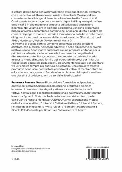 Il settore dell'editoria per la prima infanzia offre pubblicazioni allettanti, che a un occhio adulto appaiono valide e stimolanti. Ma rispondono concretamente ai bisogni di bambini e bambine tra 0 e 6 anni di età? Quali sono le facoltà cognitive e motorie disponibili in questa prima fase della vita? E in che modo una proposta editoriale può andare loro incontro? Nel volume, ora pubblicato in una nuova versione aggiornata, vengono presentati i bisogni universali di bambini e bambine nei primi anni di vita, a partire da come si dispiega in maniera unitaria il loro sviluppo, sulla base delle teorie di figure di spicco nel panorama dell'educazione attiva (Pestalozzi, Itard, Pikler, Montessori, Wallon, Goldschmied, Munari). All'interno di questa cornice vengono presentate alcune soluzioni adottate, con successo, nei servizi educativi e nelle biblioteche di diverse realtà europee. Sono inoltre analizzate alcune proposte editoriali per la primissima infanzia, scelte in base alla loro coerenza progettuale in riferimento a contenitore, contenuto e competenze del destinatario. In questo modo si intende fornire agli operatori di servizi per l'infanzia (bibliotecari, educatori, pedagogisti) gli strumenti necessari per orientarsi tra le richieste sempre più puntuali dei cittadini. Una comunità attenta promuove benessere, contrasta la povertà educativa, alimenta cultura su educazione e cura, quando favorisce la circolazione dei saperi e sostiene una pluralità di collaborazioni tra servizi e liberi cittadini.