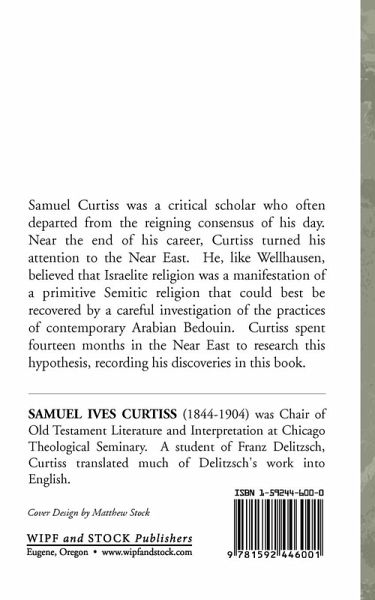 Samuel Curtiss was a critical scholar who often departed from the reigning consensus of his day. Near the end of his career, Curtiss turned his attention to the Near East. He, like Wellhausen, believed that Israelite religion was a manifestation of a primitive Semitic religion that could best be recovered by a careful investigation of the practices of contemporary Arabian Bedouin. Curtiss spent fourteen months in the Near East to research this hypothesis, recording his discoveries in this book.