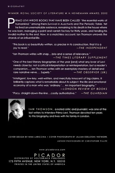 Primo Levi wrote books that have been called "the essential works of humankind," including Survival in Auschwitz and The Periodic Table. Yet he lived an unremarkable existence, remaining to his death in the house in which he'd been born; managing a paint and varnish factory for thirty years; and tending his invalid mother to the end. Now, in a matchless account, Ian Thomson unravels the strands of an influential life.