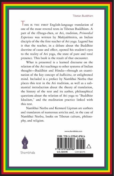 The Tibetan teaching of Dzog-chen (pronounced ZOAK-chen), also known as Ati yoga, is considered by its adherents to be the definitive and most secret teaching of the Buddha. Primordial Experience is a translation of a key text articulating the Dzog-chen teachings, "Gold Refined from Ore," by Mañjusrimitra, an Indian disciple of the first teacher of Ati yoga. According to the Dzog-chen teachings, purity of mind is always present and only needs to be recognized.