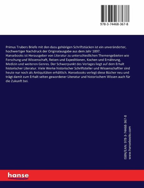 Primus Trubers Briefe mit den dazu gehörigen Schriftstücken ist ein unveränderter, hochwertiger Nachdruck der Originalausgabe aus dem Jahr 1897.