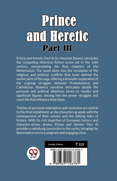 Prince and Heretic Part III by Marjorie Bowen concludes the compelling historical fiction series set in the 16th century, encapsulating the final chapters of the Reformation. The novel dives into the resolution of the religious and political conflicts that have defined the earlier parts of the saga, offering a dramatic exploration of the ongoing struggles between Protestantism and Catholicism. Bowen's narrative intricately details the personal and political dilemmas faced by royalty and significant figures, delving into the power struggles and court life that influence their fates. Themes of personal redemption and resolution are central to this final installment, as the characters grapple with the consequences of their actions and the shifting tides of history. With its rich depiction of European history and character-driven drama, Prince and Heretic Part III provides a satisfying conclusion to the series, bringing the Reformation era to a poignant and engaging close.