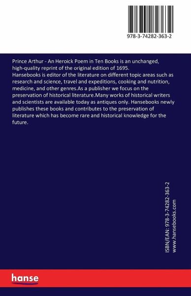 Prince Arthur - An Heroick Poem in Ten Books is an unchanged, high-quality reprint of the original edition of 1695.