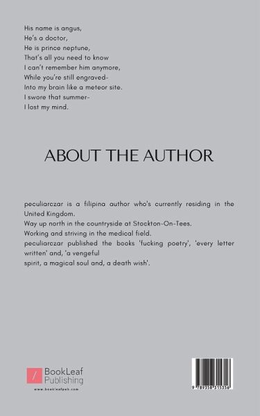 ""peculiarczar is a filipina author who's currently residing in the United Kingdom. Way up north in the countryside at Stockton-On-Tees. Working and striving in the medical field. peculiarczar published the books 'fucking poetry', 'every letter written' and, 'a vengeful spirit, a magical soul and, a death wish'.""