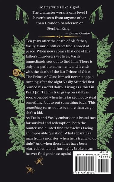 Ten years after the death of his father, Vasily still can't find a shred of peace. When news comes that a perpetrator of his father's murder survived, Vasily must resurrect the grudge that controls his life. There is only one path to atonement, and it ends with the death of the last Prince of Glass. The Prince of Glass himself never stopped running after the night Vasily burned his world down. Living as a thief under the protection of the biggest mob boss in Pearl Jin, Taein's frail grasp on safety is upended when he is tasked not to steal something, but to put something back. But this something happens to be more than cargo-- she's a kid. As Taein and Vasily embark on a brutal race for survival and redemption, both the hunter and hunted find themselves facing an impossible question: What separates a man from a monster, when he is trying to do right? And when those lines have been blurred, bent, and thoroughly broken, can he ever find goodness again? CONTENT WARNINGS for strong violence, profanity, and heavy drug use.