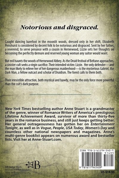 Caught dancing barefoot in the moonlit woods, dressed only in her shift, Elizabeth Penshurst is considered by decent folk to be notorious and disgraced. Sent by her father, a reverend, to serve penance with a cousin in Hernewood, Lizzie sets her thoughts on becoming the perfectly demure and reserved young woman any suitor would want. But evil haunts the woods of Hernewood Abbey. As the Druid festival of Beltane approaches, a sinister cult seeks a virgin sacrifice. Their intended victim: Lizzie. Her only defender-and the man likely to relieve her of her dangerous maidenhood-is the mysterious Gabriel, the Dark Man, a fellow outcast and scholar of Druidism. The forest calls to them both. Their irresistible attraction, both mystical and bawdy, may be the only force more powerful than the cult's dark purpose.