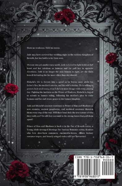 Show no weakness. Yield no mercy. Jade may have survived her wedding night in the ruthless kingdom of Rewyth, but her battle is far from over. Thrown into yet another new world, Jade is forced to fight between her heart and her intuition as humans and fae pull her in opposite directions. Jade is no longer the only human in sight, yet she finds herself defending the fae more and more. Malachi's life is thrown into a spiral as he learns more about his father's lies, his mother's secrets, and his wife's destiny. He is willing to protect Jade at all costs, even if she's in more danger with every passing day. Fighting his instincts as the Prince of Shadows, Malachi is forced to submit to human ruling, following his mother's plan to unite humans and fae and create peace in the human kingdom of Fearford. Jade and Malachi's journey continues in Prince of Sins and Shadows as new enemies, ancient prophecies, and mythical creatures threaten them every step of the way. Will their bond defy the true nature of who they really are? Or will they succumb to the strong forces that pull them apart? Prince of Sins and Shadows is book 2 in the Fae of Rewyth series, a Young Adult Arranged Marriage Fae Fantasy Romance series. Readers who love slow-burn romances, enemies-to-lovers, classic fantasy romance tropes, and broody winged males will love this series!