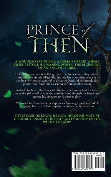 A wounded fae prince. A human healer whose kisses restore his waning power. The beginning of an ancient curse. Holly O'Bannon wants nothing more than to heal her ailing mother and to live a simple village life. But fate has other plans-such as sending her through a portal to die at the hands of the broody fae prince who thinks she's a sorceress from another realm. Gadriel Fionbharr, the Prince of Five, fears he'll never find his fated mate, the girl who'll subdue the curse burning through his blood and restore his kingdom to its former glory. Wounded far from home, he captures a human girl, and instead of acting on his first violent impulse, he forces her to help him. Little does he know, he now holds his mate at his mercy-inside a one-bed cottage, deep in the woods of Faery. Prince of Then tells the tale of the first Black Blood Prince. The events happen nine hundred fae years prior to book 1, Prince of Never. This full-length prequel can be read first, last, or anywhere in between. First is ideal!