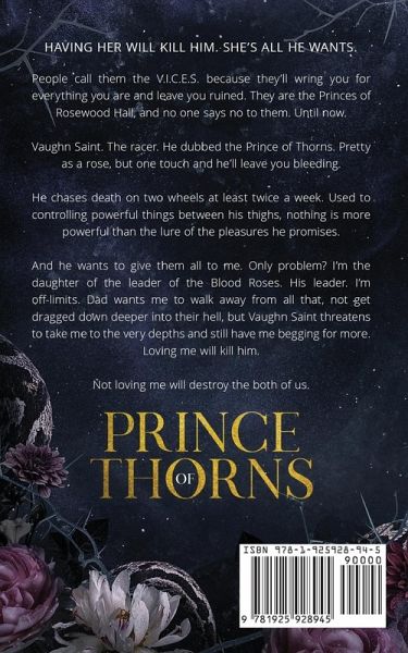 From Elizabeth Stevens, writing as E.J. Knox, comes... The bad boy willing to risk everything - even his life - to get the girl. People call them the V.I.C.E.S. because they'll wring you for everything you are and leave you ruined. They are the Princes of Rosewood Hall, and no one says no to them. Until now. Vaughn Saint. The racer. He dubbed the Prince of Thorns. Pretty as a rose, but one touch and he'll leave you bleeding. He chases death on two wheels at least twice a week. Used to controlling powerful things between his thighs, nothing is more powerful than the lure of the pleasures he promises. And he wants to give them all to me. Only problem? I'm the daughter of the leader of the Blood Roses. His leader. I'm off-limits. Dad wants me to walk away from all that, not get dragged down deeper into their hell, but Vaughn Saint threatens to take me to the very depths and still have me begging for more. Loving me will kill him. Not loving me will destroy the both of us. This is a dark, angsty, contemporary high school bully/enemies-to-lovers, forbidden romance with enough steam to melt your screen. Do not engage in public consumption unless your poker face is impenetrable. Do not read if you don't like bossy alpha males claiming what's theirs, a nerdy but feisty heroine determined not to fall for a silver tongue, sassy besties, snarky love-to-hate-them side characters, or bad boys with secret hearts of gold. This book is written using Australian English. This will affect the spelling, grammar and syntax you may be used to. It might come across as typos, awkward sentences, poor grammar, or missed/wrong words. In the majority of cases (I won't claim it's infallible, despite all best efforts), this is intentional and just an Aussie way of speaking (it took my US beta readers a bit to get used to). I can't say 'the' Aussie way, since we seem to differ even within the same state. Just think of us as a weird mix of British and US vernacular and colloquialisms, but with our own randomness thrown in. I still hope you enjoy it, though! Contains possible triggers.