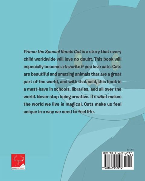 Prince the Special Needs Cat is a story that every child worldwide will love no doubt. This book will especially become a favorite if you love cats. Cats are beautiful and amazing animals that are a great part of the world, and with that said, this book is a must-have in schools, libraries, and all over the world. Never stop being creative. It's what makes the world we live in magical. Cats make us feel unique in a way we need to feel life.