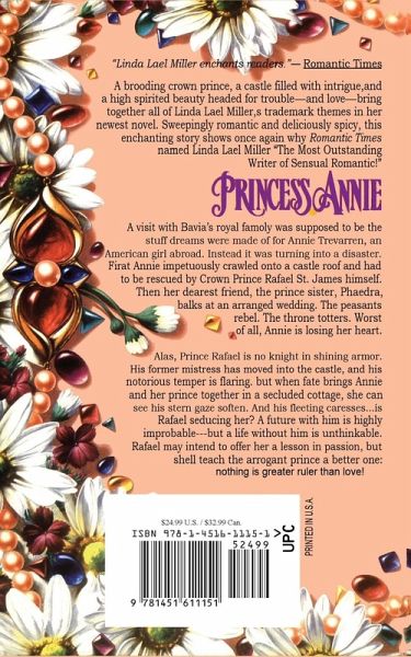 A visit with Bavia's royal family was supposed to be the stuff dreams were made of for Annie Trevarren, an American girl abroad. Instead it was turning into a disaster. First Annie impetuously crawled onto a castle roof and had to be rescued by Crown Prince Rafael St. James himself. Then her dearest friend, the prince's sister, Phaedra, balks at an arranged wedding. The peasants rebel. The throne totters. Worst of all, Annie is losing her heart. Alas, Prince Rafael is no knight in shining armor. His former mistress has moved into the castle, and his notorious temper is flaring. But when fate brings Annie and her prince together in a secluded cottage, she can see his stern gaze soften. And his fleeting caresses...is Rafael seducing her? A future with him is highly improbable -- but a life without him is unthinkable. Rafael may intend to offer her a lesson in passion, but she'll teach the arrogant prince a better one: nothing is a greater ruler than love!