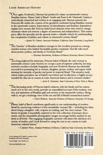 As the elder daughter of an emperor whose wife had presented him with no sons, Isabel stood to inherit the monarchy of Brazil with the passing of Dom Pedro II. On three separate occasions, Isabel was named regent, or head of state, when her father was required to leave the country for extended periods. On each occasion, she served as the dutiful daughter, following her father's instructions to the letter and resisting any attempts at personal aggrandizement. During her third regency, as her father recuperated in Europe, rather than accumulate personal power and oppose the forces of republicanism and abolition, Isabel personally led the struggle to pass the Gold Law of 1888 abolishing slavery throughout Brazil, thus ridding the country of one of the institutions upon which traditional monarchical Brazil was based and speeding the downfall of the monarchy, the monarchy she would inherit, in 1889. Princess Isabel of Brazil examines Isabel's role as an extraordinary woman who had access to material wealth and education and power, in patriarchal nineteenth-century Brazil. Professor Barman looks at how her life was constrained by her subordinate roles as daughter, wife, mother, and even as empress-in-waiting, using the fascinating career of Isabel to examine the interplay of gender and power in the nineteenth century. This new book is an excellent resource for courses biography, women's studies, and Latin American history courses.
