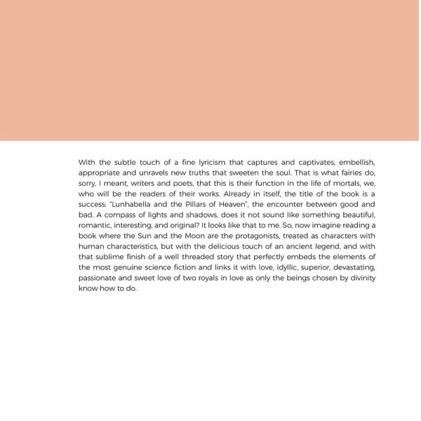 The book that is part of a literary trilogy, is like a wise eclectic compendium, of how much knowledge the author of history, science, and mythology. And it goes back to the beautiful legends of the antiquity of gods and demigods that gave rise to the beautiful legends of antiquity, taking as a fundamental argument the love between the star King, the Sun and that beautiful and distinguished lady that we usually see almost all nights, the moon. What emerges from them through their love will fill the constellations of the universe, where light and shadows also play an important role. "Lunhabella And The Pillars of Heaven", a meeting marked in a compass of light and shadows¿ will fill you with charm and make you spend one of those magical moments in which we lose contact with reality to enter the delicious world of literature, led by Azucena hand's, in a magical book that today, puts in its hands as a reader.