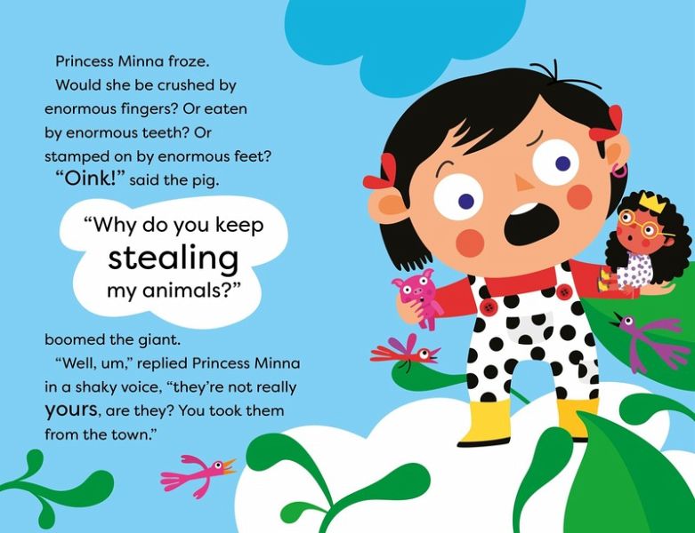 Princess Minna loves to straighten out mix-ups and mishaps in the kingdom! Join her in her hilarious quest to solve the problem of a thieving giant in this full-color illustrated chapter book.   An enormous magical beanstalk has sprouted in the kingdom and the giant who lives at the top of it keeps stealing things from the townsfolk! Is Minna brave enough to climb the beanstalk and bring back the stolen belongings, and will the giant EAT HER if she does?   Full of colorful illustrations, these short, funny stories are perfect for visual readers and readers moving on from picture books.   Also in the series: * Princess Minna: The Unicorn Mix-Up * Princess Minna: The Enchanted Forest * Princess Minna: The Wicked Wood * Princess Minna: The Big Bad Snowy Day * Princess Minna: The Best Princess
