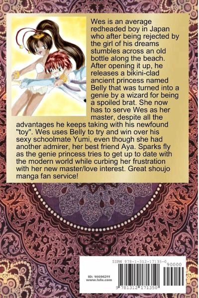 Wes is an average redheaded boy in Japan who after being rejected by the girl of his dreams stumbles across an old bottle along the beach. After opening it up, he releases a bikini-clad ancient princess named Belly that was turned into a genie by a wizard for being a spoiled brat. She now has to serve Wes as her master, despite all the advantages he keeps taking with his newfound "toy". Wes uses Belly to try and win over his sexy schoolmate Yumi, even though she had another admirer, her best friend Aya. Sparks fly as the genie princess tries to get up to date with the modern world while curbing her frustration with her new master/love interest. Great shoujo manga fan service!