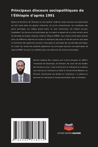 Depuis la formation de l'Éthiopie en tant qu'État moderne, divers discours sociopolitiques ont été tenus dans les uvres littéraires, les écrits universitaires, les manifestes des partis politiques, les médias grand public et, plus récemment, les médias sociaux. Cependant, les discours sociopolitiques qui occupent le devant de la scène varient selon les périodes politiques (régimes impérial, Därg et EPRDF). Les romans amhariques publiés sous ces différents régimes ont acquis la réputation de jouer un rôle de premier plan dans le traitement des questions sociales, historiques et politiques de ces périodes politiques. Ce travail de recherche présente également les principaux discours sociopolitiques du régime EPRDF tels qu'ils se reflètent dans une sélection de romans amhariques.