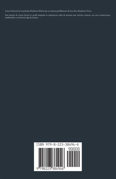 Azaar, la historia de un príncipe del planeta Melton que se enamora perdidamente de una chica del planeta Tierra. Esta historia de ciencia ficción la escribí inspirada en experiencias reales de personas que tuvieron contacto con seres extraterrestres, añadiéndoles a sus historias algo de fantasia