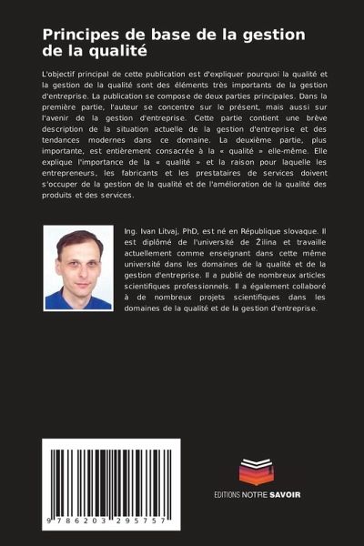 L'objectif principal de cette publication est d'expliquer pourquoi la qualité et la gestion de la qualité sont des éléments très importants de la gestion d'entreprise. La publication se compose de deux parties principales. Dans la première partie, l'auteur se concentre sur le présent, mais aussi sur l'avenir de la gestion d'entreprise. Cette partie contient une brève description de la situation actuelle de la gestion d'entreprise et des tendances modernes dans ce domaine. La deuxième partie, plus importante, est entièrement consacrée à la « qualité » elle-même. Elle explique l'importance de la « qualité » et la raison pour laquelle les entrepreneurs, les fabricants et les prestataires de services doivent s'occuper de la gestion de la qualité et de l'amélioration de la qualité des produits et des services.