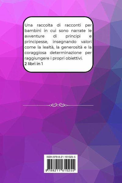 Una raccolta di racconti per bambini in cui sono narrate le avventure di principi e principesse, insegnando valori come la lealtà, la generosità e la coraggiosa determinazione per raggiungere i propri obiettivi. 2 libri in 1