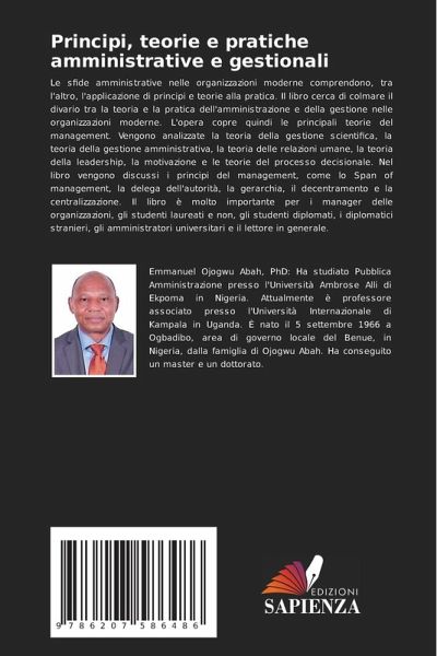 Le sfide amministrative nelle organizzazioni moderne comprendono, tra l'altro, l'applicazione di principi e teorie alla pratica. Il libro cerca di colmare il divario tra la teoria e la pratica dell'amministrazione e della gestione nelle organizzazioni moderne. L'opera copre quindi le principali teorie del management. Vengono analizzate la teoria della gestione scientifica, la teoria della gestione amministrativa, la teoria delle relazioni umane, la teoria della leadership, la motivazione e le teorie del processo decisionale. Nel libro vengono discussi i principi del management, come lo Span of management, la delega dell'autorità, la gerarchia, il decentramento e la centralizzazione. Il libro è molto importante per i manager delle organizzazioni, gli studenti laureati e non, gli studenti diplomati, i diplomatici stranieri, gli amministratori universitari e il lettore in generale.